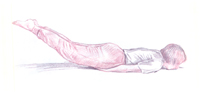 Method: First position: Rest your chin on the mat with your arms by your side, palms on the floor.